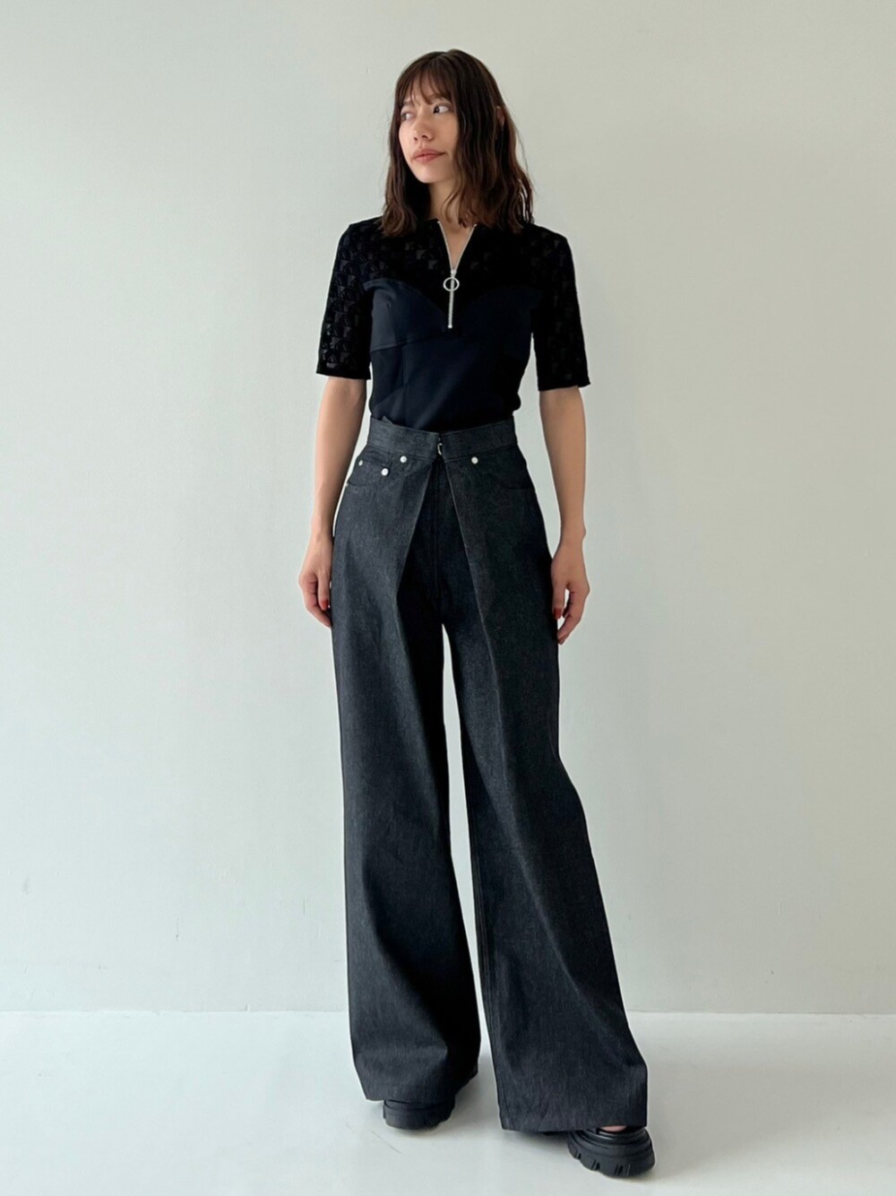 STUDIOUS STAFF(STUDIOUS WOMENS)のデニムパンツ「【JOHN LAWRENCE SULLIVAN/ジョンローレンスサリバン】RIGID DENIM WIDE PANTS (SHORT LENGTH)」を使ったコーディネート