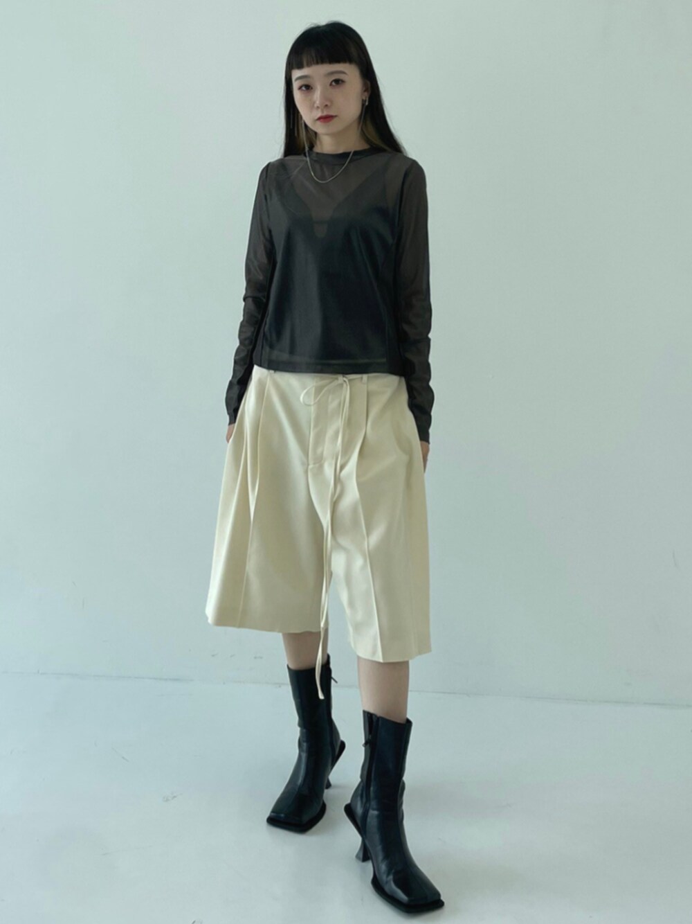 STUDIOUS STAFF(STUDIOUS WOMENS)のTシャツ/カットソー「【STUDIOUS/ステュディオス】《モードに-5㎏見え》リブパネルシアートップス/ストレッチ/ノンストレス」を使ったコーディネート