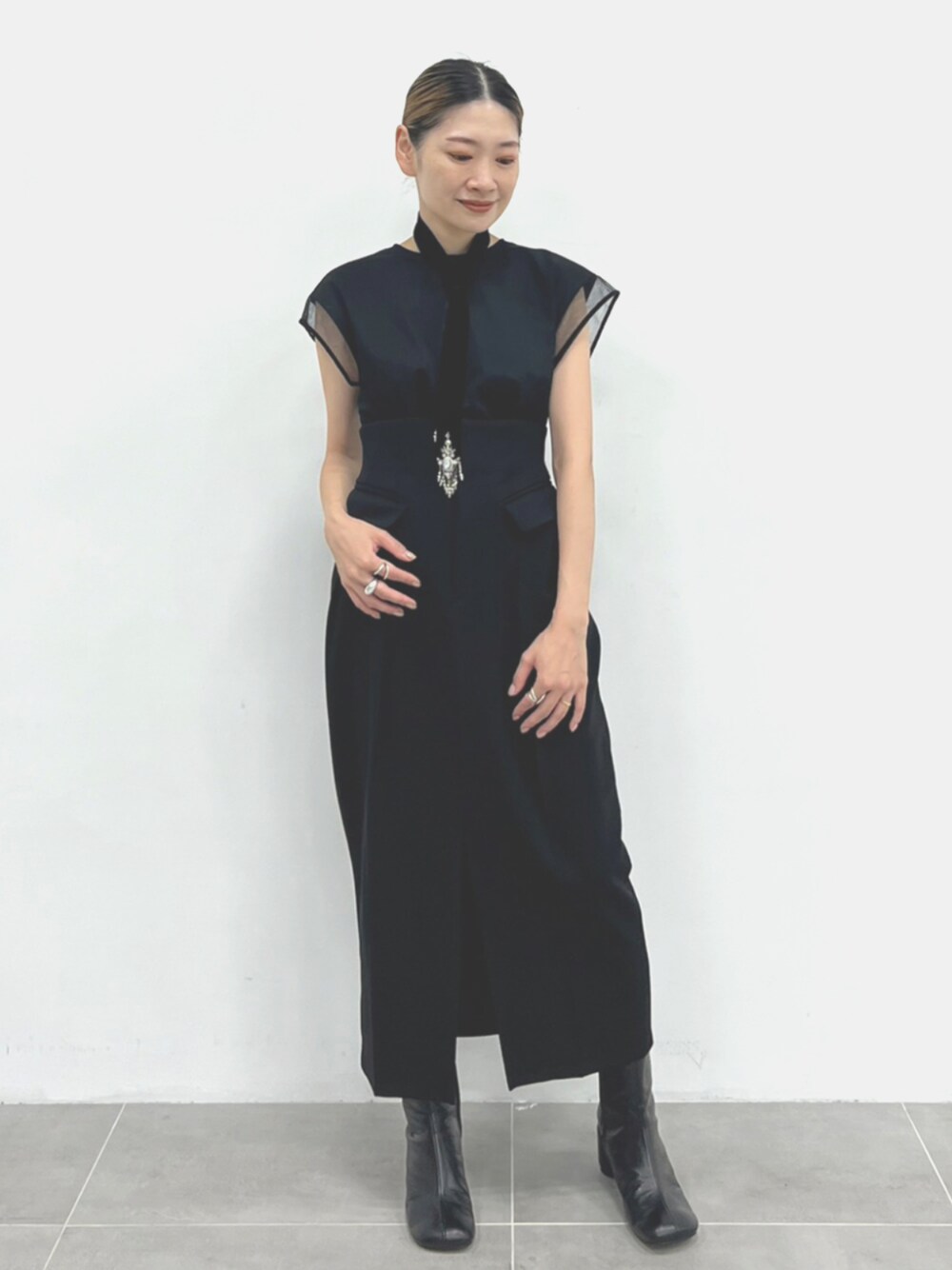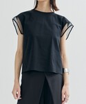 STUDIOUS STAFF(STUDIOUS WOMENS)のTシャツ/カットソー「【tanakadaisuke/タナカダイスケ】《STUDIOUS別注》China ribbon no sleeve T-shirt/チャイナリボンTシャツ」を使ったコーディネート