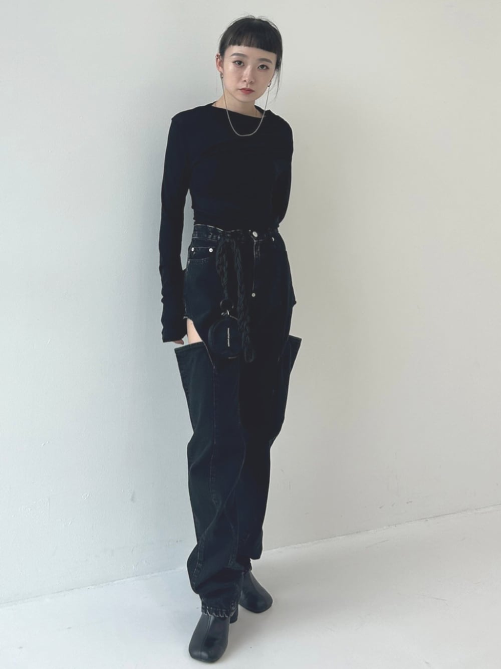 STUDIOUS STAFF(STUDIOUS WOMENS)のデニムパンツ「【JOHN LAWRENCE SULLIVAN/ジョンローレンスサリバン】WASHED DENIM HOLLOWED OUT PANTS」を使ったコーディネート