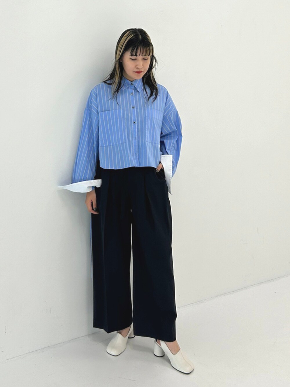 STUDIOUS STAFF(STUDIOUS WOMENS)のシャツ/ブラウス「【STUDIOUS/ステュディオス】オーバーサイズシャツ/クロップド丈/ヒップカバー/体型カバー/ウォッシャブル」を使ったコーディネート