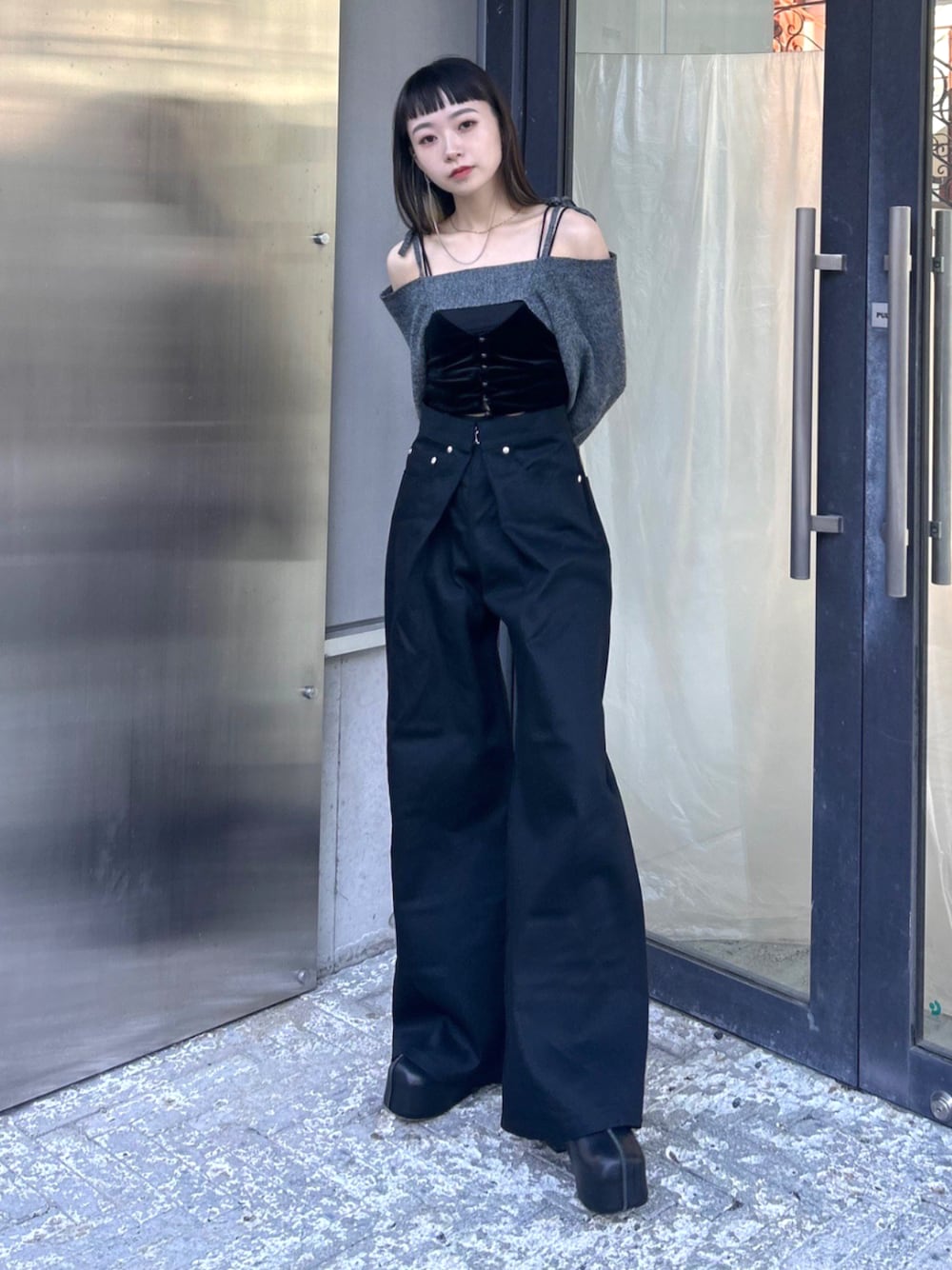 STUDIOUS STAFF(STUDIOUS WOMENS)のデニムパンツ「【JOHN LAWRENCE SULLIVAN/ジョンローレンスサリバン】RIGID DENIM WIDE PANTS (SHORT LENGTH)」を使ったコーディネート