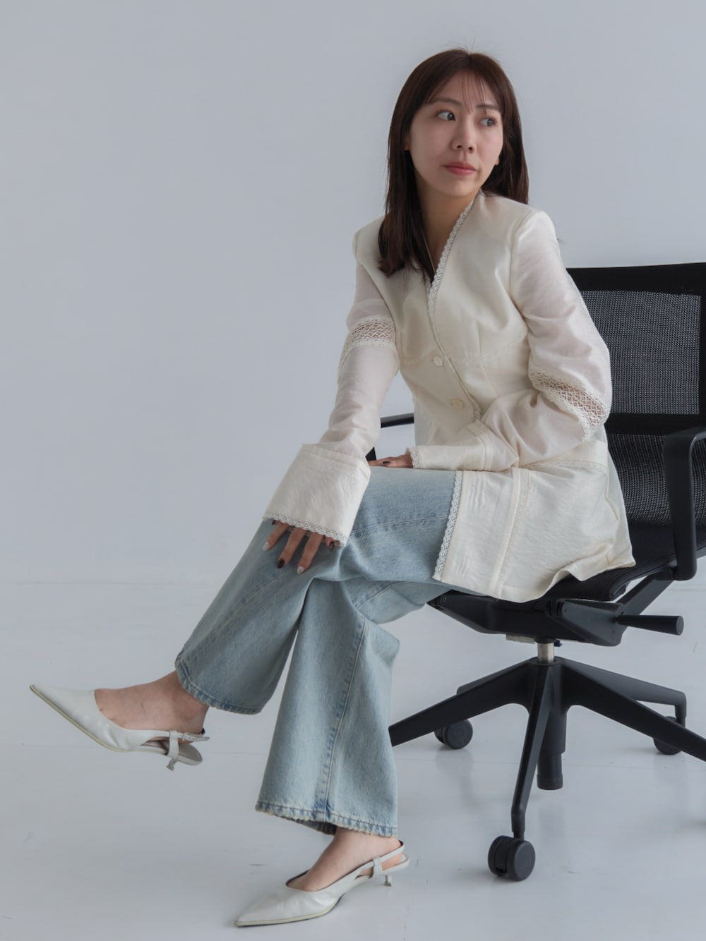 STUDIOUS STAFF(STUDIOUS WOMENS)のノーカラージャケット「【FETICO/フェティコ】《STUDIOUS別注》別注 LACE-PANELED JACKET/レースパネルドジャケット/シャツジャケット」を使ったコーディネート
