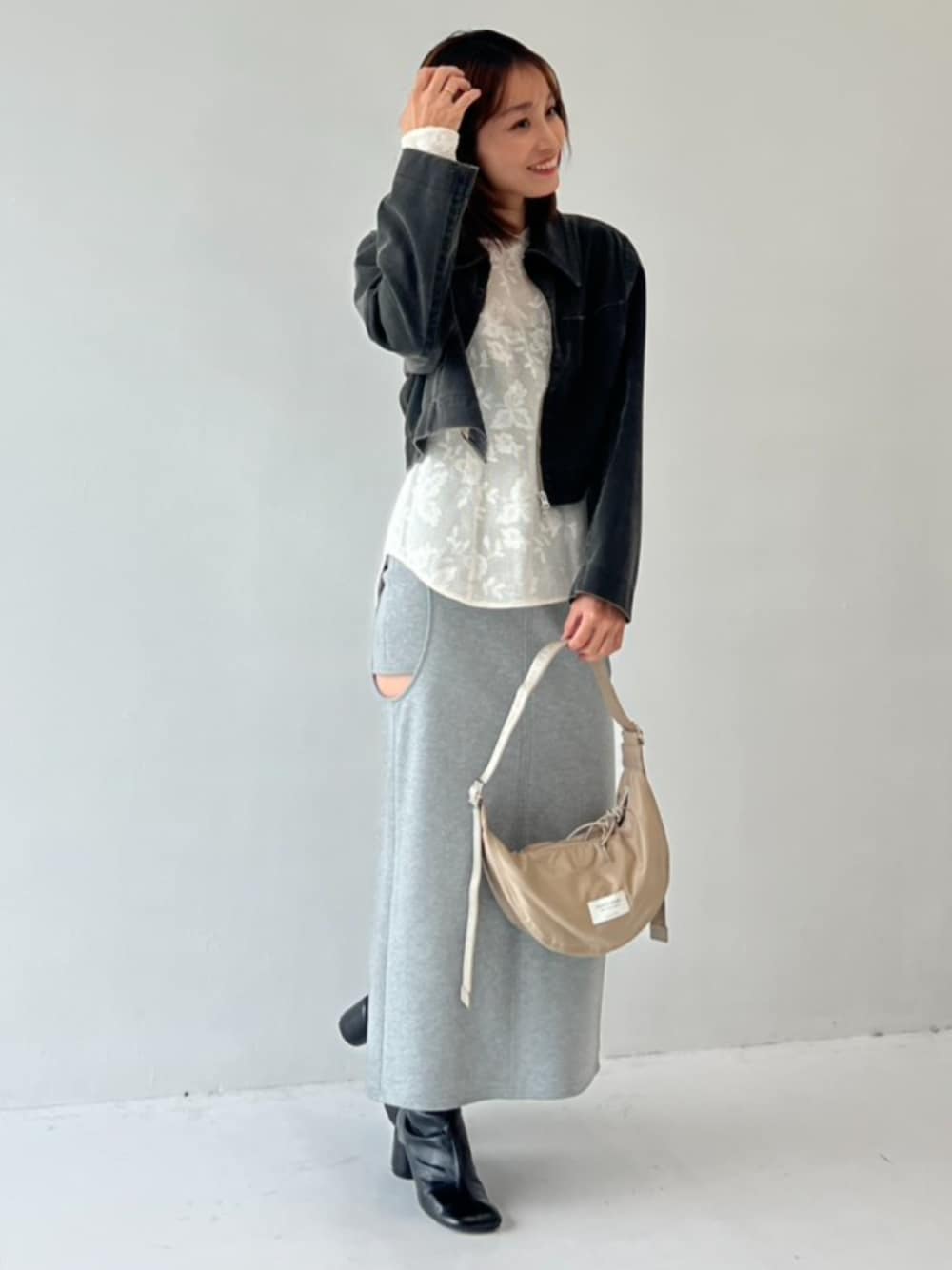 STUDIOUS STAFF(STUDIOUS WOMENS)のショルダーバッグ「【beautiful people/ビューティフルピープル】《STUDIOUS別注》《新型》ナイロンムーンショルダーバッグ/三日月バッグ」を使ったコーディネート