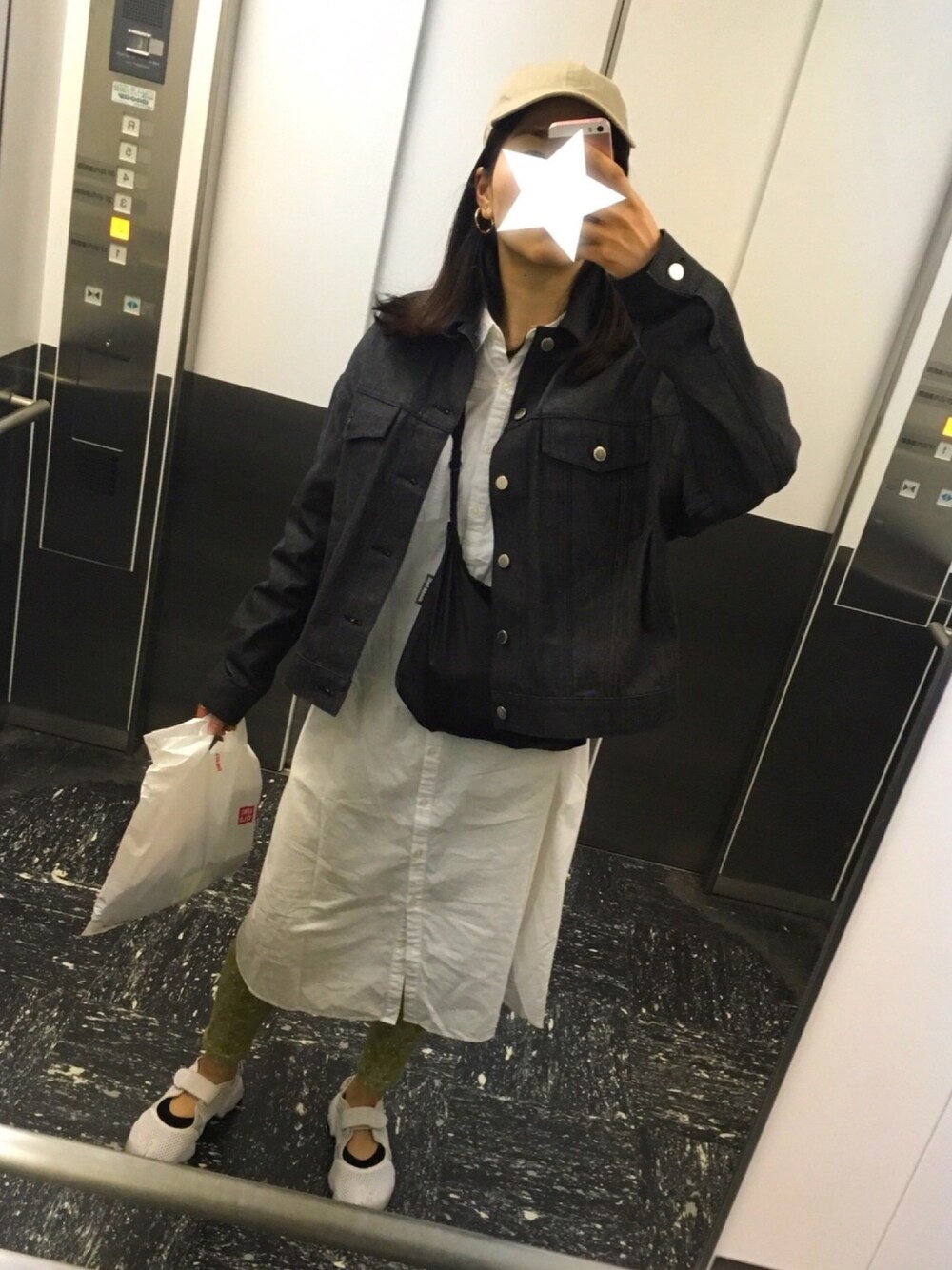 5年前くらいに買ったシャツワンピとレギンス?がしっくりきた。しわくちゃだけど