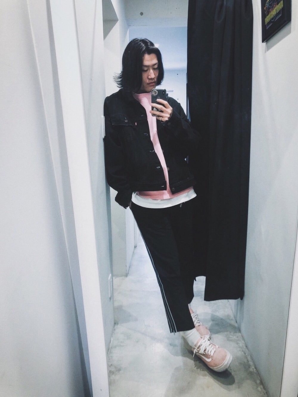 ブラックピンクコーデ Jacket #levis Tops #champion Slacks #libeiro Sox #nike Sneaker #vans #oldskool