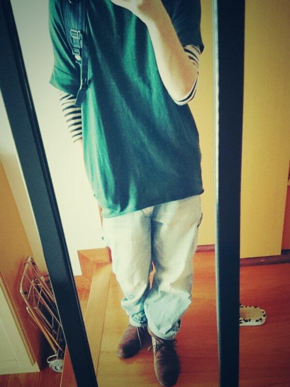 ゆるーい感じにまとめてみました ペインターパンツの色が淡い分、 トップスにしっかりした色を。 それにしても暑い(゜_゜)