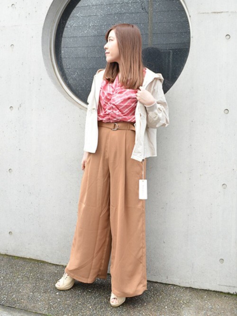 STYLEBLOCKのシャツ/ブラウス「ガーゼ先染めチェックギャザーブラウス」を使ったコーディネート