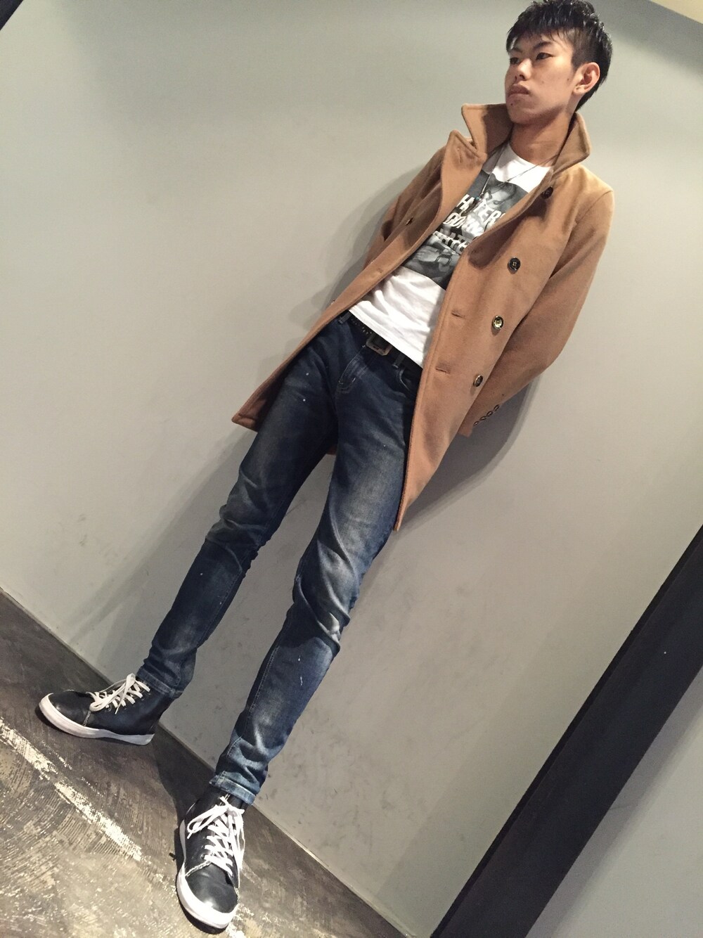 HUNCH天神コア店 まさやのチェスターコート「メルトンダブルチェスターコート」を使ったコーディネート