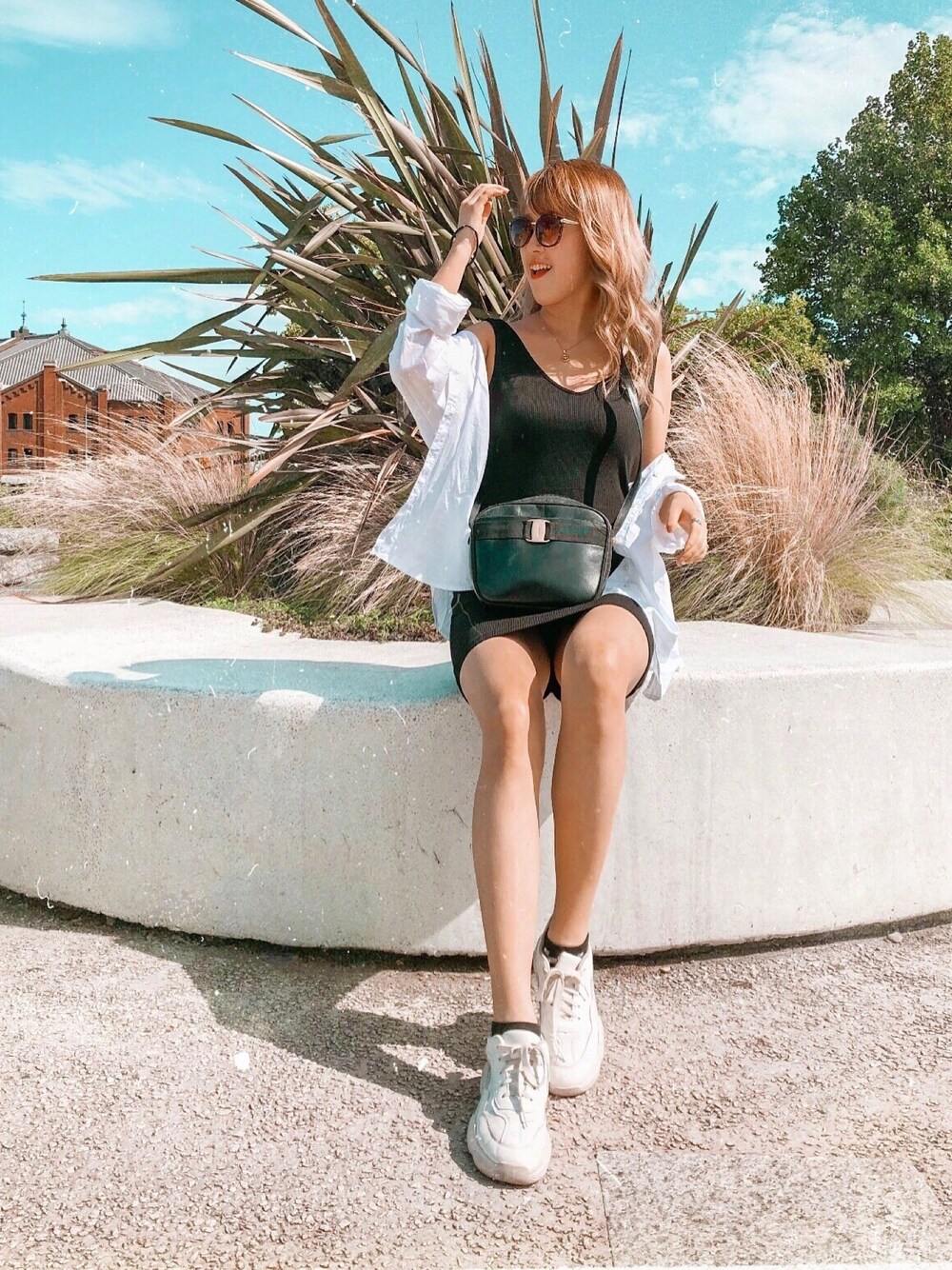 タイトのワンピースを着る時は上に何か大きめのシャツを羽織ると凄くスタイルUPします🔖 なので今回はタイトのワンピースに大きめのワイシャツを敢えて着崩して肌を見せつつもスタイルUPを意識したコーディネート💯