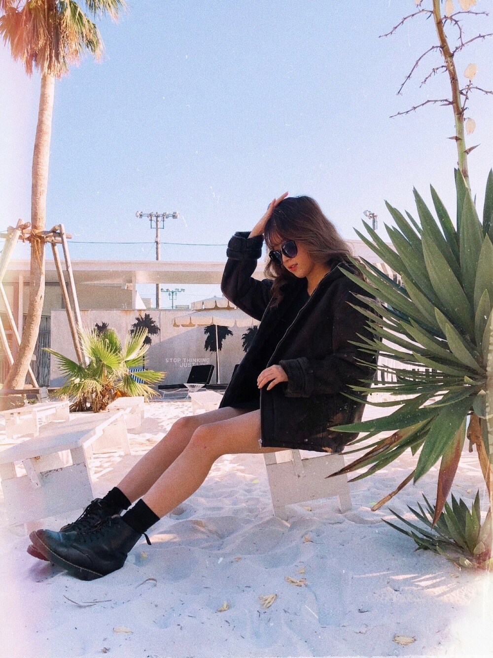 ビックサイズのムートンコートに中はタイトのワンピースを合わせて女性らしいコーデに🌓