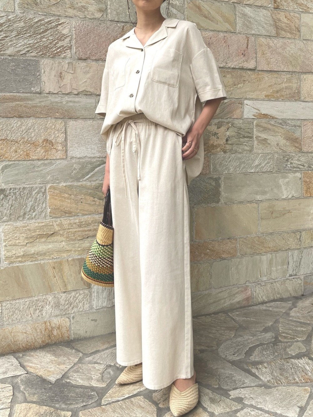 ーーーーーーーーーーーーーーーーーーーーーーーー ナチュラル感のあるリネン素材をセットアップで。 ゆったりとしたシルエットと、自然な風合いでリラックス感なあるスタイリングに🌿 シャツは前を閉めてタックインはもちろん、羽織としても◎ (model:160㎝ ナチュラル着用) ーーーーーーーーーーーーーーーーーーーーーーーー
