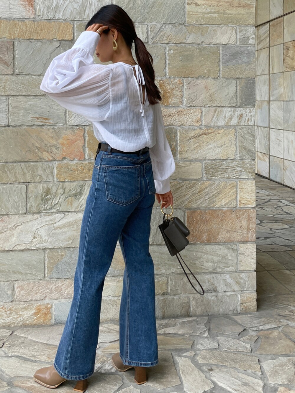 StyleSeaのシャツ/ブラウス「ボリューム袖と後ろリボン。コットンクレープブラウス」を使ったコーディネート