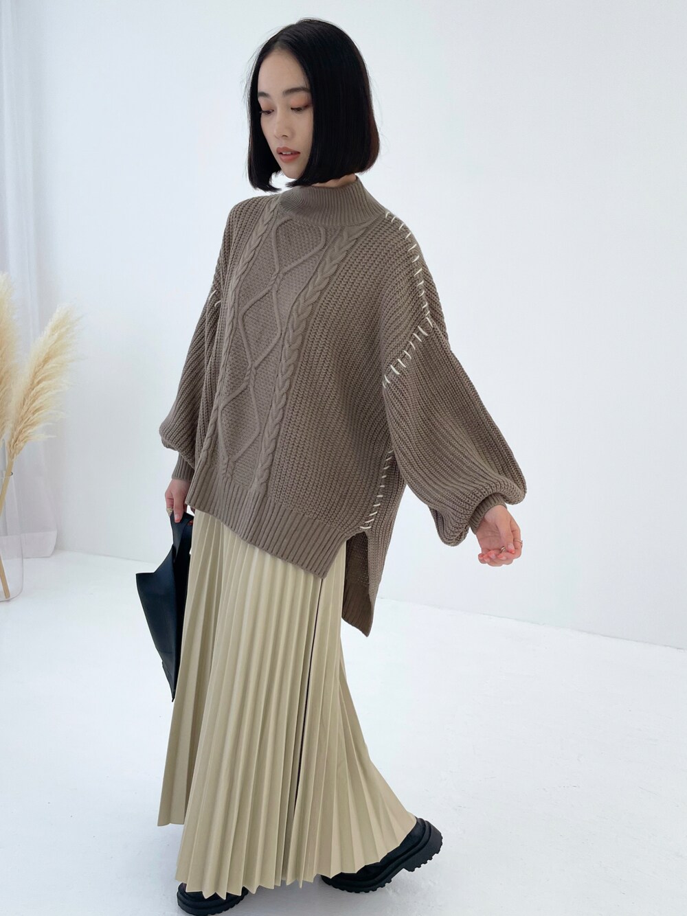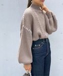 ーーーーーーーーーーーーーーーーーーーーーーーー ◾︎ ハンドステッチ風。モックネックケーブルニット (品番:F21352201380) 表情豊かなケーブルニットはざっくりとしたローゲージタイプ。 ふっくらとした風合いの、なめらかで太目の糸を使用したモヘアタッチなボリュームスリーブニットです。 肩〜袖、後ろに施されたステッチがアクセントになり、この一枚でコーディネートがワンランクアップします! (model:162㎝ モカ着用) ーーーーーーーーーーーーーーーーーーーーーーーー