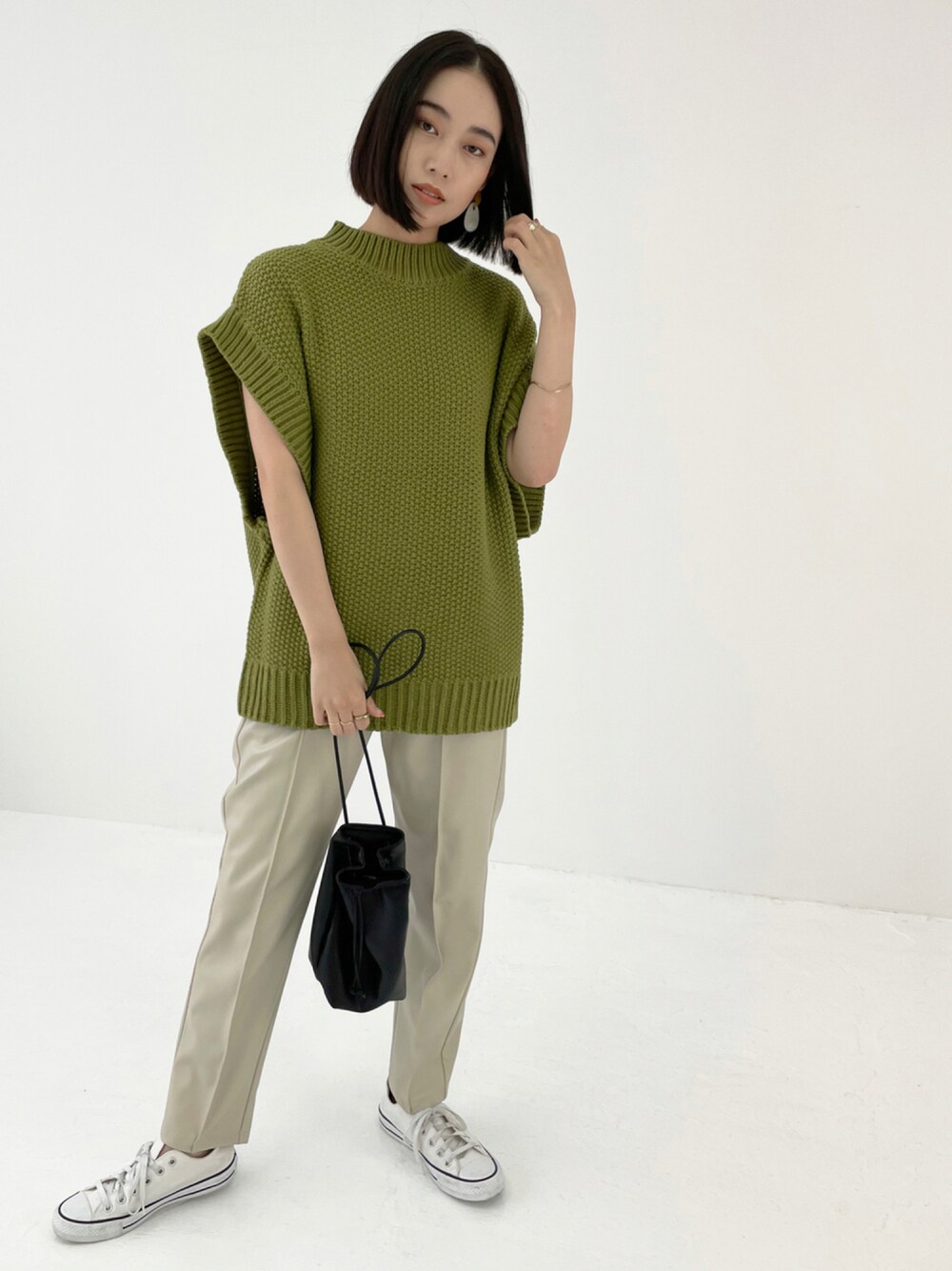 StyleSeaのスラックス「高見え抜群。フェイクレザーテーパードタックパンツ」を使ったコーディネート