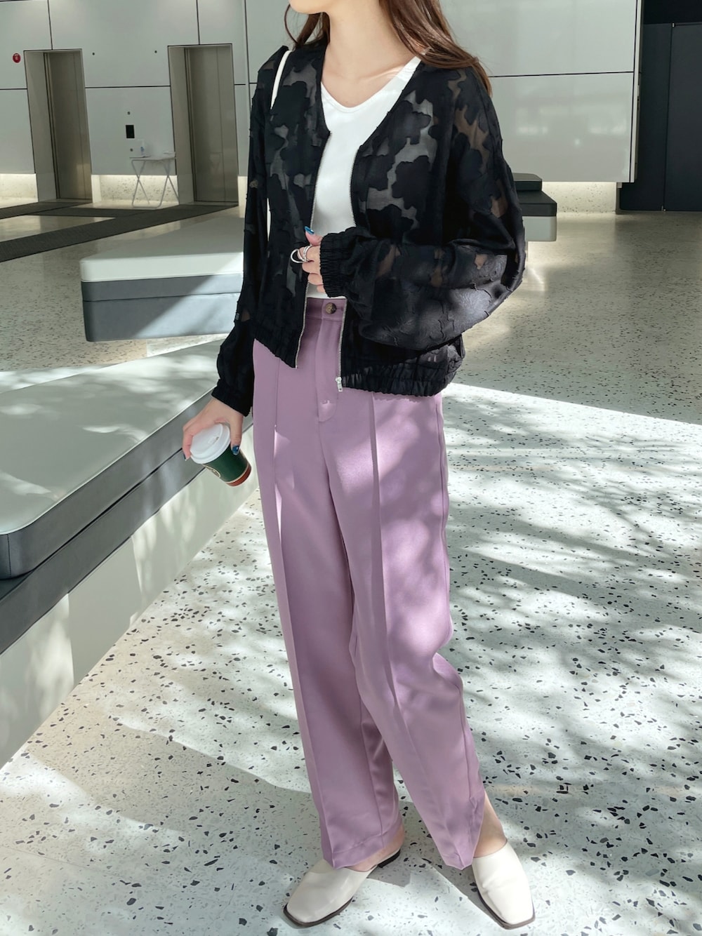 StyleSeaのブルゾン「シアーフラワージャガードノーカラーブルゾン」を使ったコーディネート