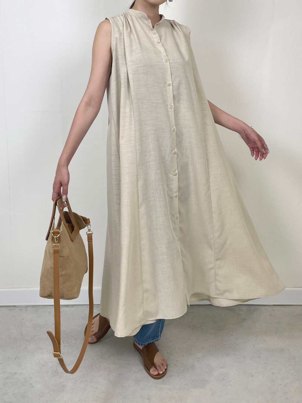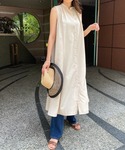 これからの季節に嬉しいさわやかな着心地です🎐 フロントボタン仕様なので1枚で着ても、ロングジレとして普段のスタイリングにプラスしても◎ (model:163cm)