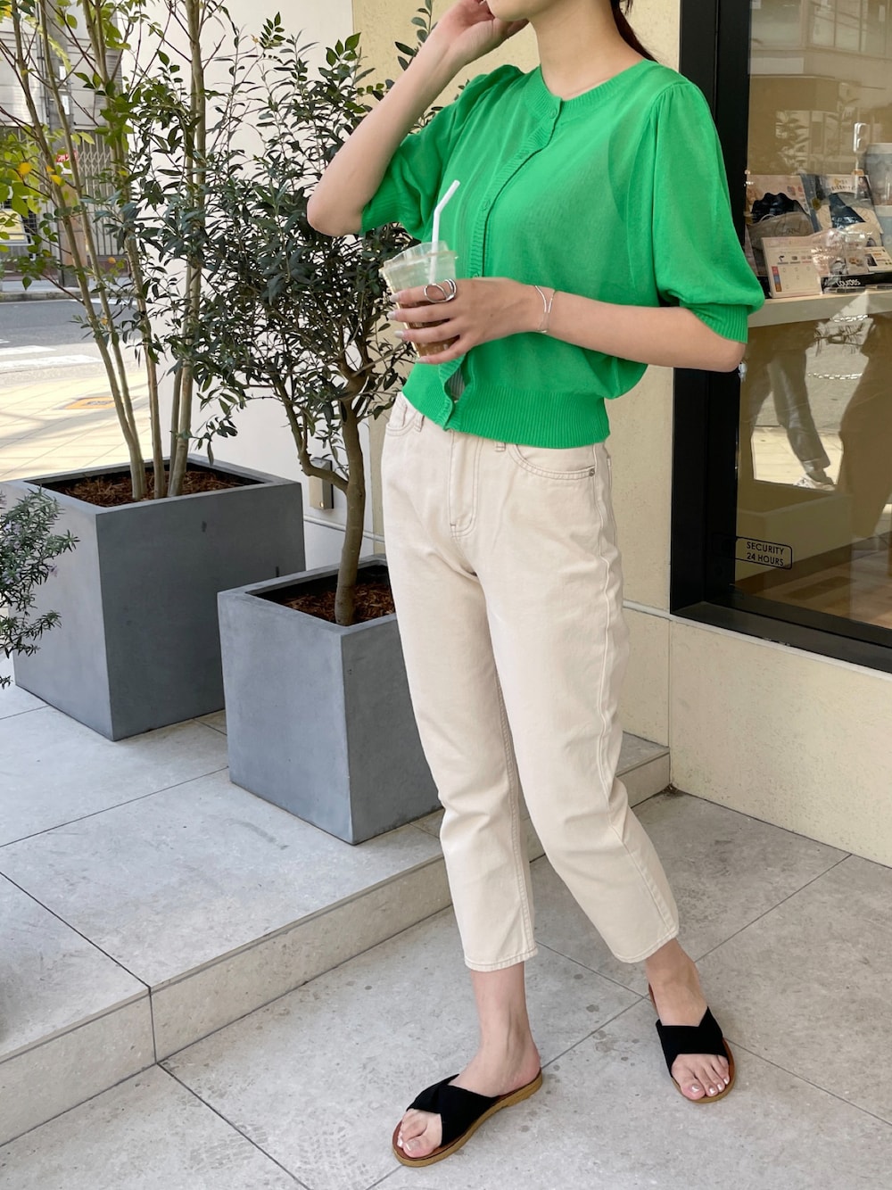 ビタミンカラーの2wayシアーカーディガン💚 カラーは全部で4色ですー! グリーン/オレンジ/ブラック/アイボリー ¥5,280 tax in 是非ZOZOTOWNでcheckしてみてください😊🌼🌼 (model:163cm)