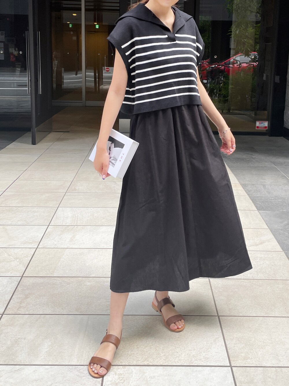 StyleSeaのベスト「ボーダービッグカラーニットベスト」を使ったコーディネート