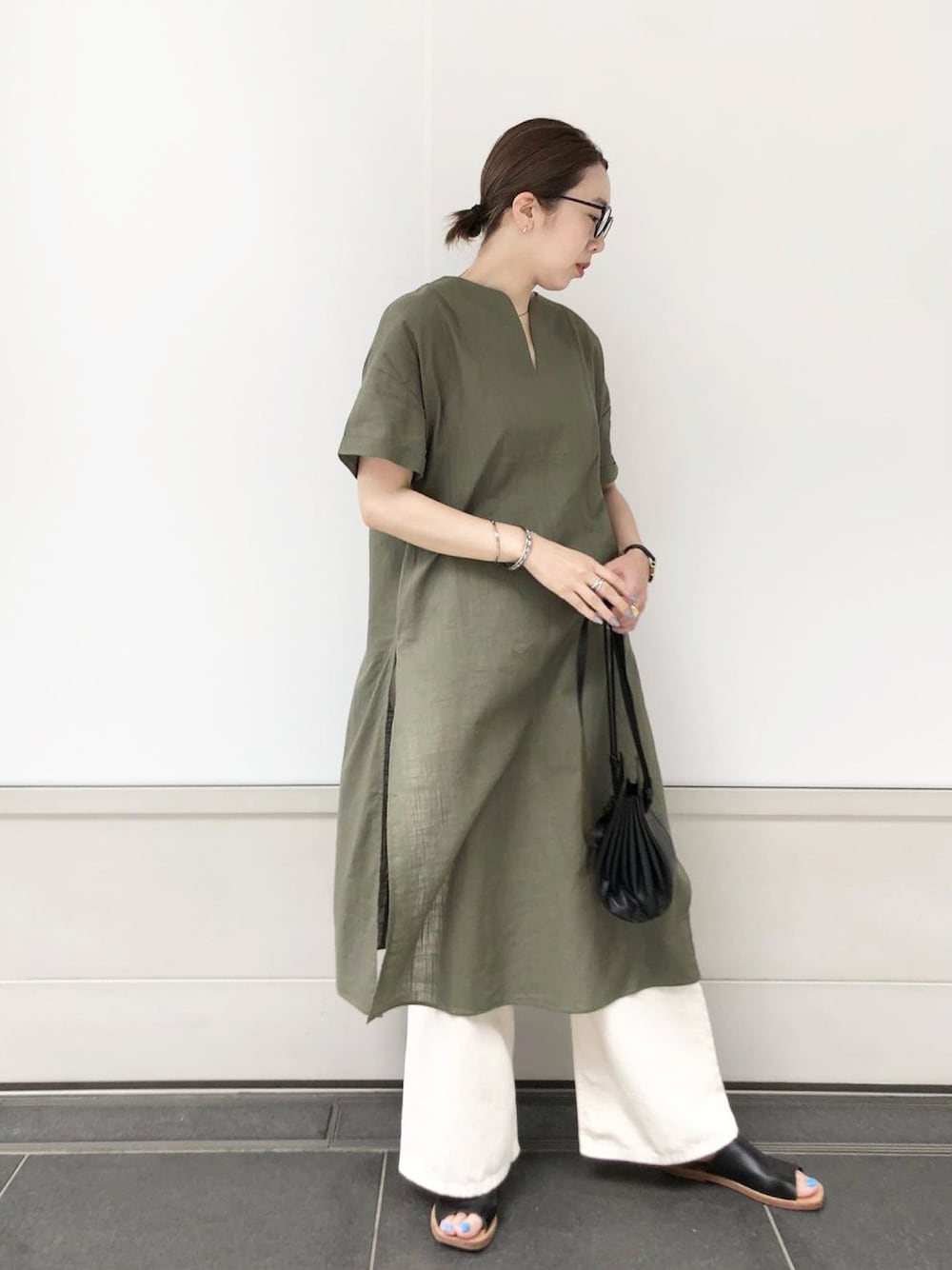 StyleSeaのワンピース「リネンタッチコットンカフタンワンピース」を使ったコーディネート