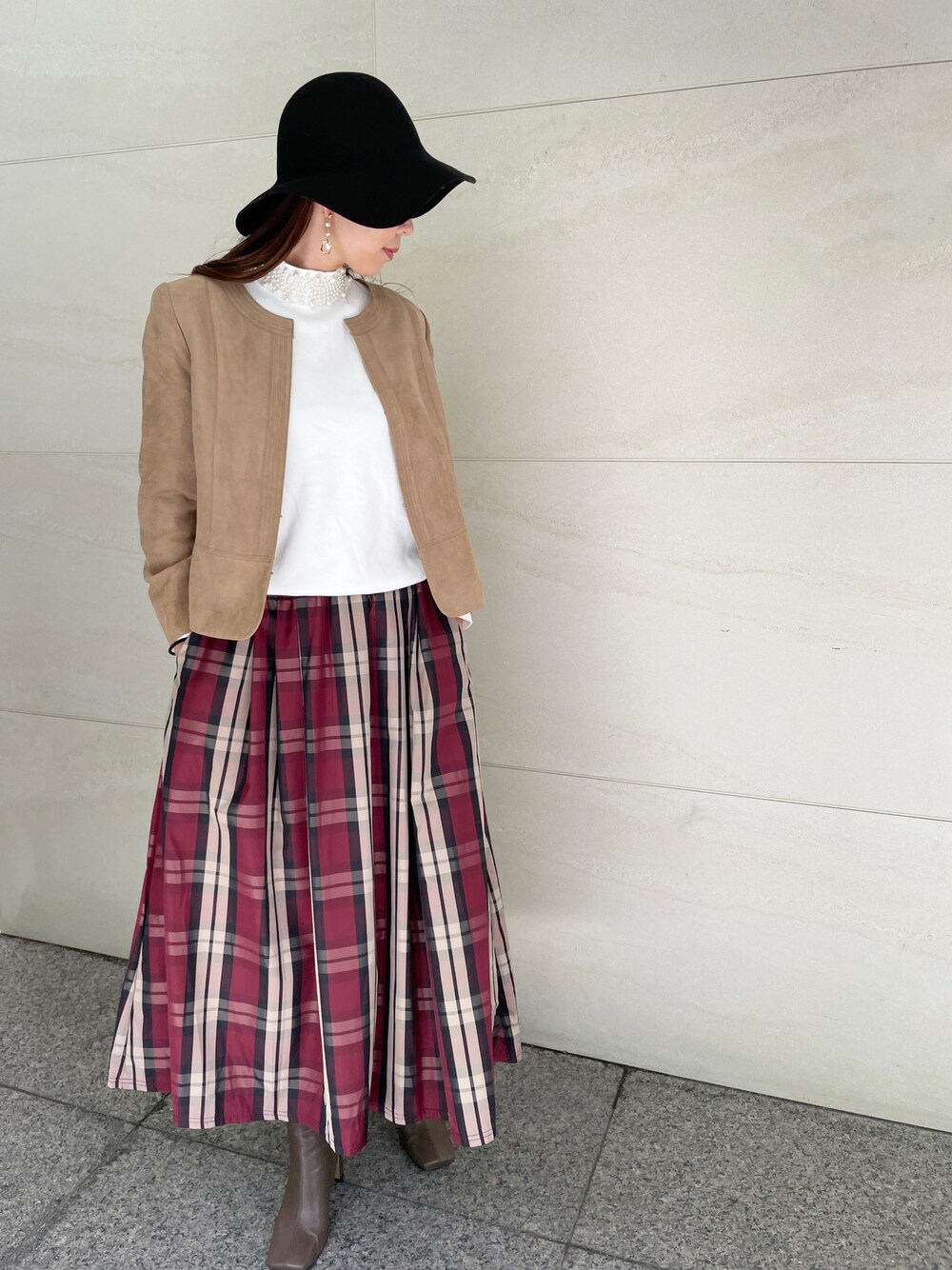 StyleSeaのスカート「チェックロングギャザーフレアスカート」を使ったコーディネート