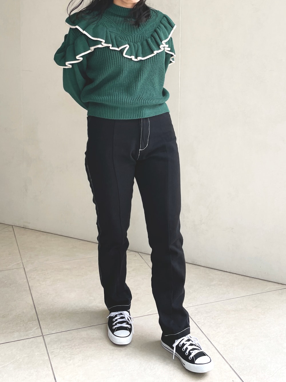 StyleSeaのニット/セーター「トレンドライクに。ヨークフリルバイカラーニット」を使ったコーディネート