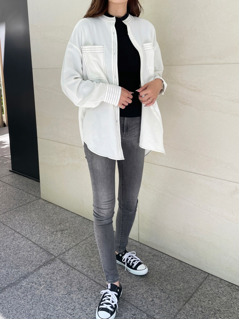 StyleSeaのシャツ/ブラウス「スタンドカラーステッチブラウス」を使ったコーディネート