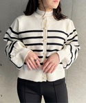 StyleSeaのカーディガン/ボレロ「パールボタンボーダーニットカーディガン」を使ったコーディネート