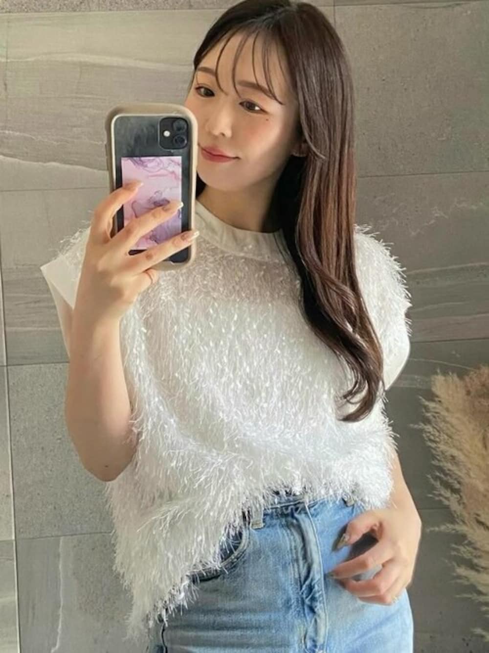 一枚着るだけで映えるトップスが好きです🤍 これ、見たことない生地感で可愛い!