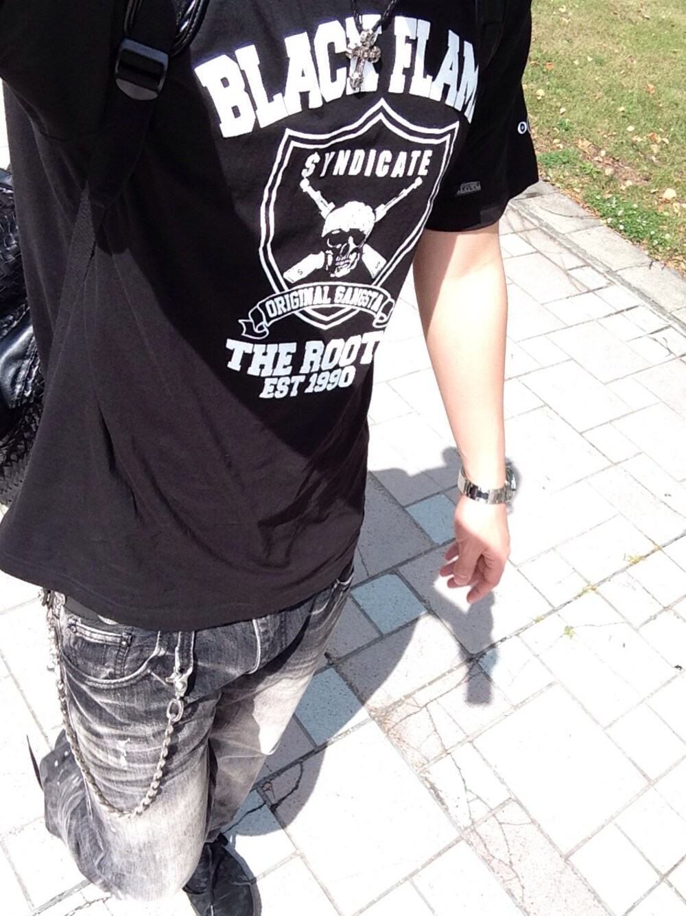 メイン色をブラックにして ブラックストリートコーデ! Tシャツ BLACK FLAME デニム BLACK FLAME シューズ VANS アクセ CHROME HEARTS OF THE NEIGE STYLE 最近ひたすら SC×BFのTシャツを3枚 ヘビロテしてる!!