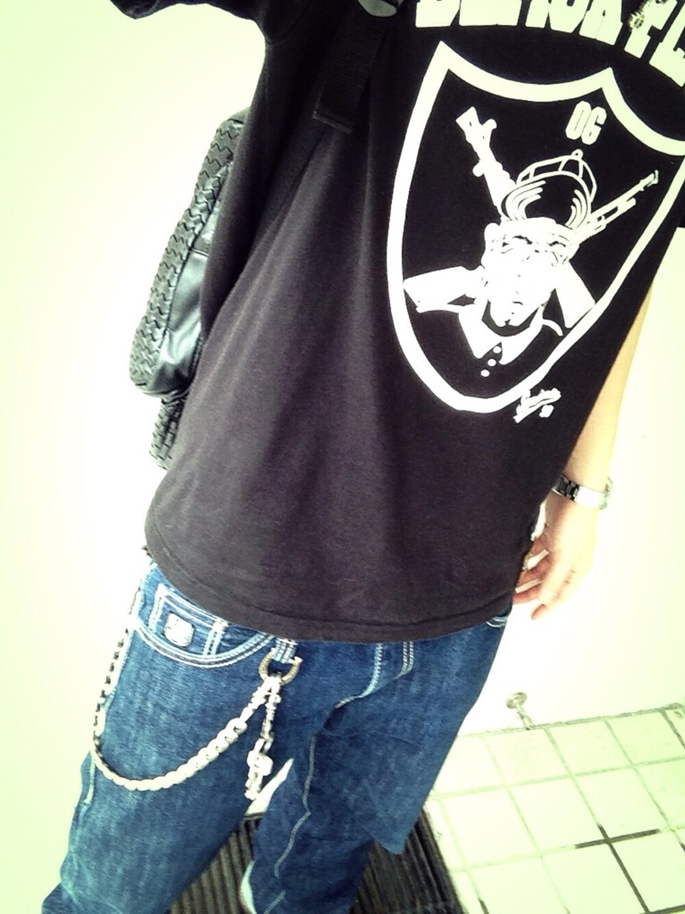 Tシャツ BLACK FLAME デニム BLACK FLAME アクセ CHROME HEARTS OF THE NEIGE STYLE ブーツ RED WING