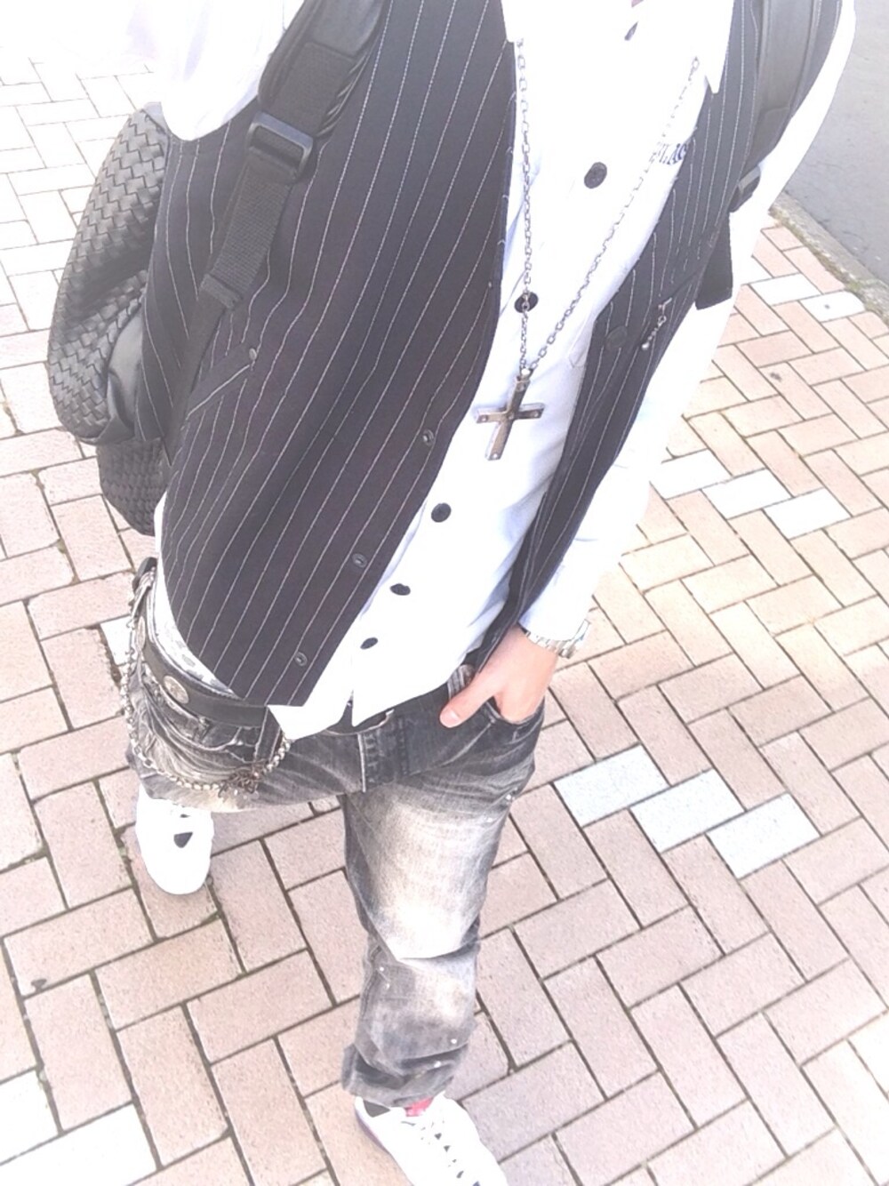 ストリートを意識したコーデ! 足元は最近ゲットした AIR JORDAN7をON!! ベスト BLACK FLAME シャツ BLACK FLAME ベルト BLACK FLAME デニム BLACK FLAME シューズ AIR JORDAN