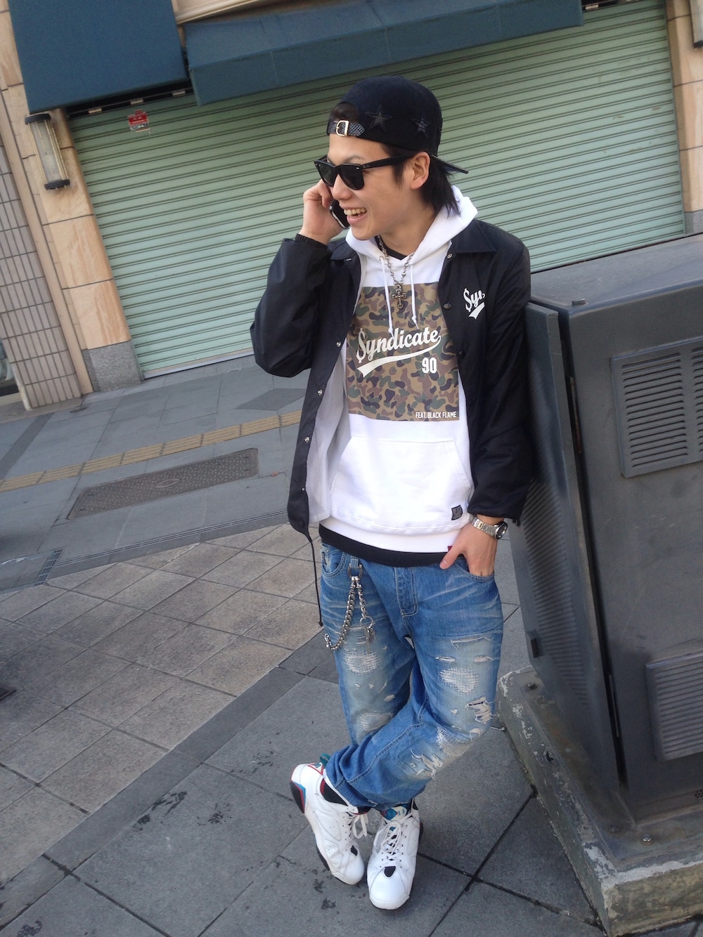 アウター BLACK FLAME パーカー BLACK FLAME デニム BLACK FLAME キャップ BLACK FLAME スニーカー AIR JORDAN サングラス Ray Ban