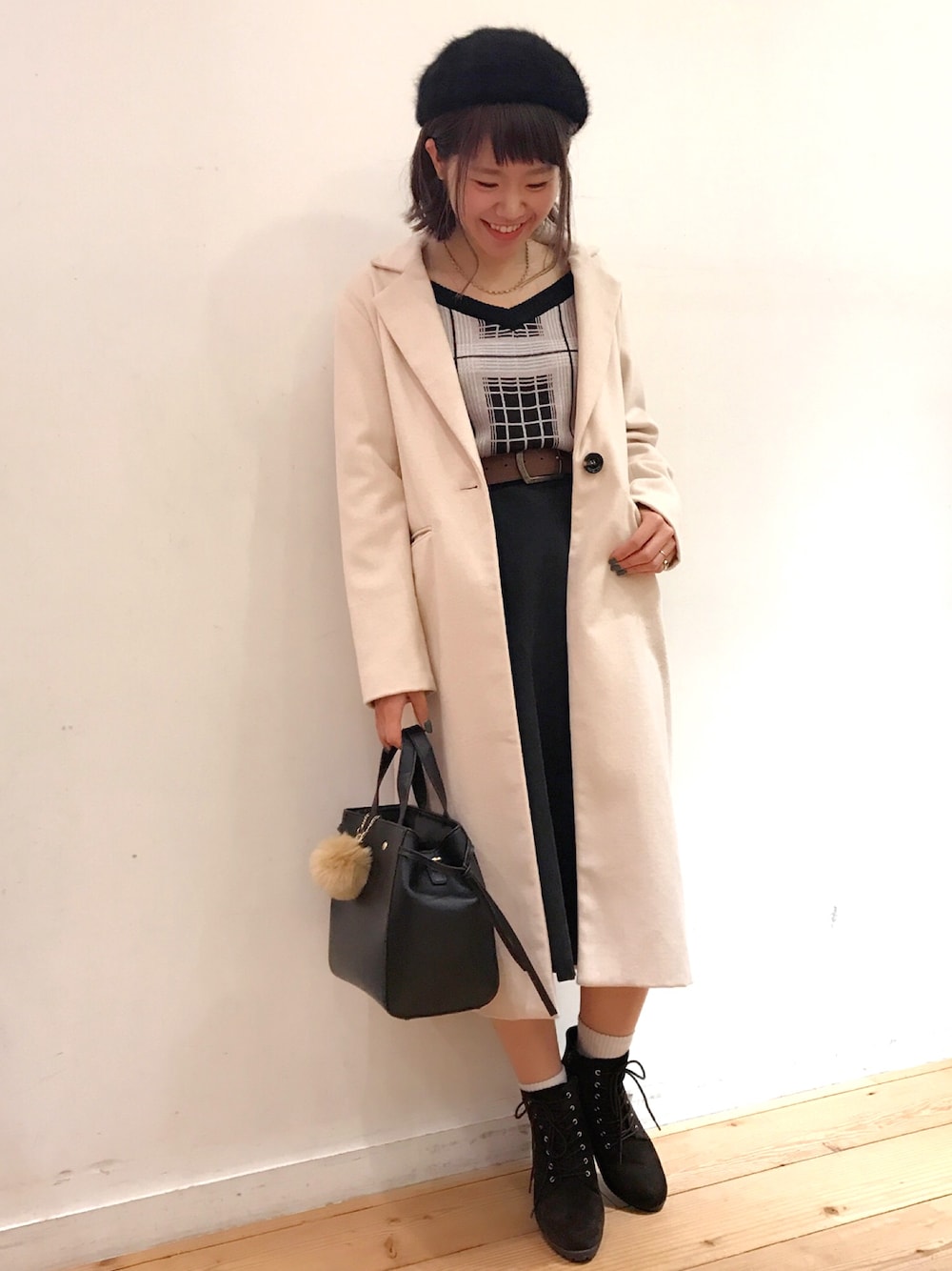 かみちゃんのハンチング/ベレー帽「アンゴラ風ベレー帽」を使ったコーディネート