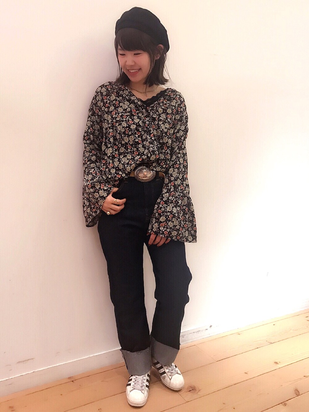 シルエットが可愛いデニム👖💗 前に登場していた花柄ブラウスの 着回しコーデです\( ˆoˆ )/🌟 いつも いいね&save ありがとうございます♡♡