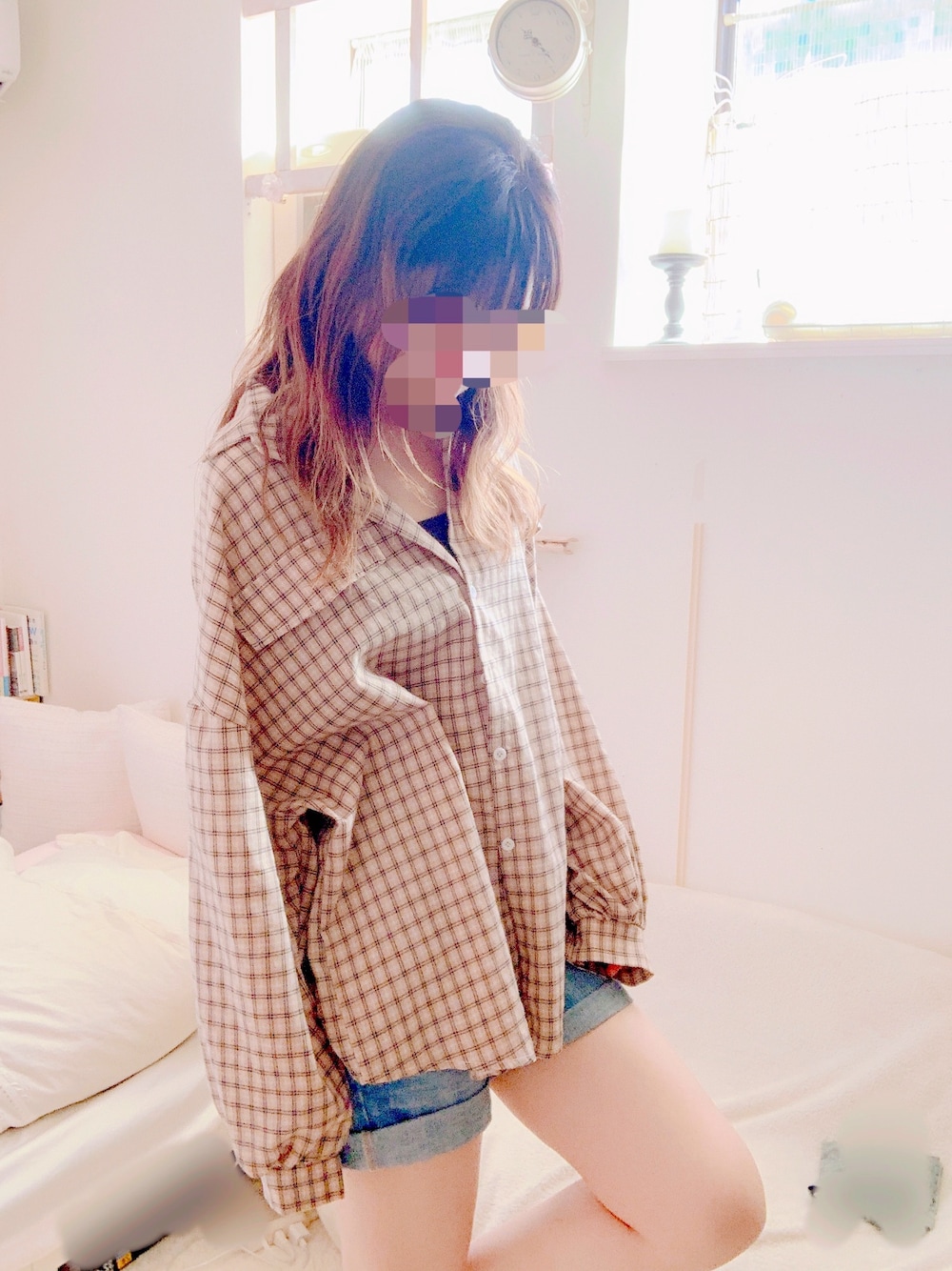 メリーラテさんのチェックシャツ♦️♦️ 形がすごい可愛い💕