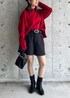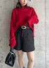 赤ニットが主役のミニコーデです。 ニットは前の丈が短くサイドスリットが入っているためスッキリ見えするので、インが苦手な人も着やすい◎ スカートやデニムと合わせて大人っぽくも使えます☺︎ 着回しコーディネートを載せてますので、ぜひご覧ください!