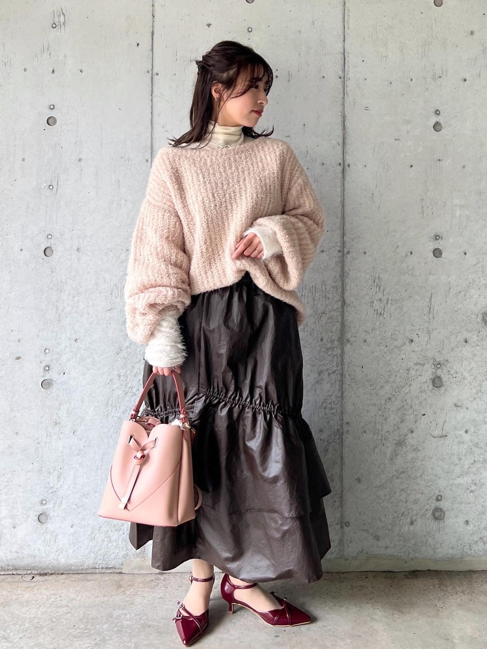 たぽっとしたボリューム袖のかわいらしさ満点のニットと、ブラウンでフリルのスカートを合わせた冬のデートコーディネートです。 ニットはショートパンツやミニスカートと合わせるとよりスッキリカジュアルキュートな印象に! スカートはフリルが女性らしいですがパリッとしたハリ感のある素材でカジュアルにも◎ スウェット合わせが今年らしくておすすめです☺︎ 着回しコーディネートを載せてますので、ぜひご覧ください!