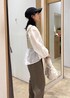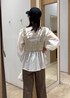 カーキのセットアップワイドパンツを春らしくカジュアルに着こなすコーデです。 ワイドパンツはセットアップのジャケットとトップスがございます。 ブラウスはデニムと合わせてシンプルに着ても透け感とデザインが映えて可愛い♡ 着回しコーディネートを載せてますので、ぜひご覧ください!