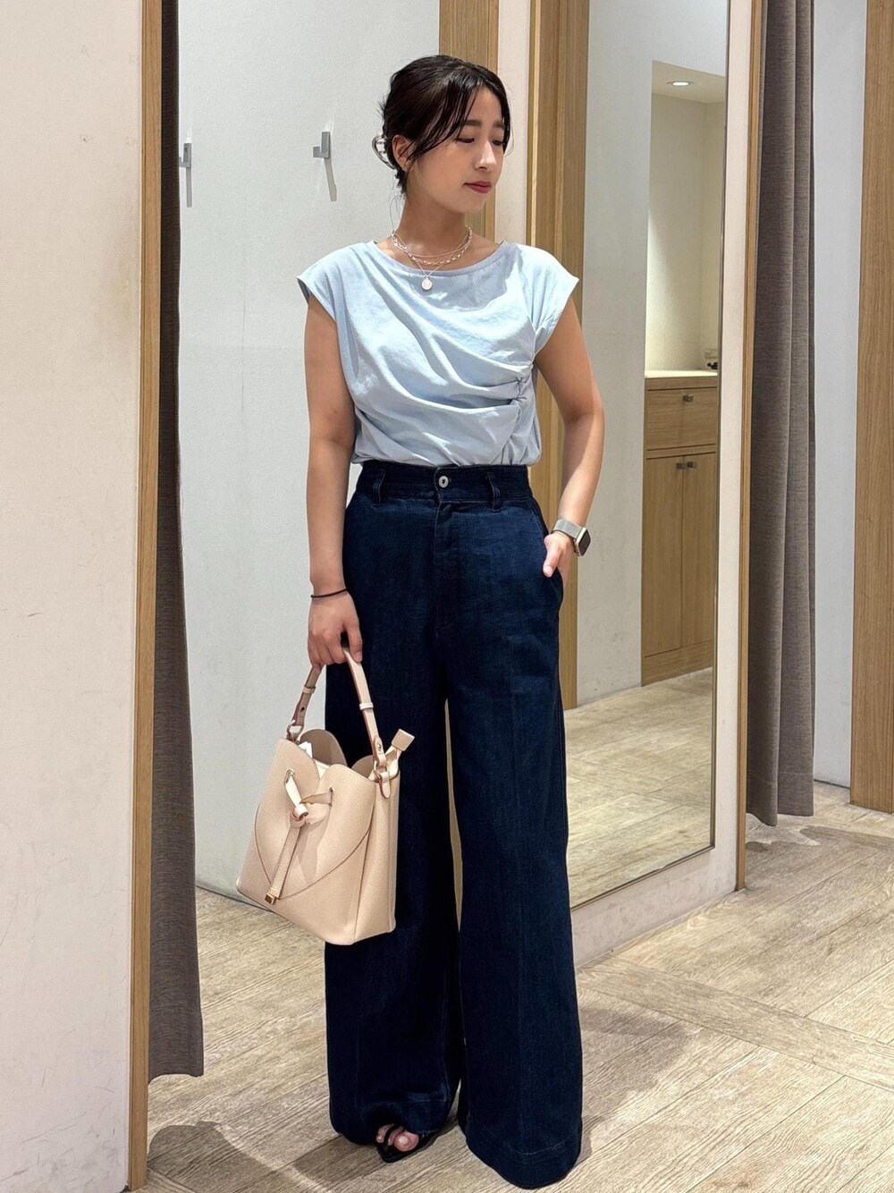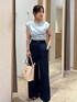 部屋着見えしないカットソー×デニムのカジュアルコーデです。 カットソーはスラックスと合わせてお仕事にも◎ デニムは裾にボリュームがあるので、トップスはコンパクトなものだと低身長やウェーブもバランスがとりやすいです☺︎ 着回しコーディネートを載せてますので、ぜひご覧ください!