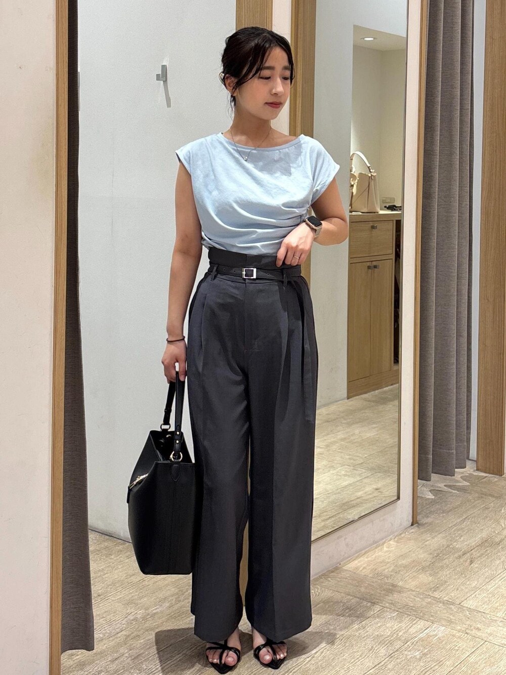 低身長のお仕事パンツコーデです。 トップスはカットソー素材なので、デニムと合わせて普段使いしてもナチュラルでおすすめ☺︎ パンツはウエストがキュッと細見えするのでボリュームのあるトップスと合わせても対比で細見えしてスタイルアップします! 着回しコーディネートを載せてますので、ぜひご覧ください!