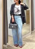 Tシャツ×デニムスタイルをジャケットでカジュアルすぎずハンサムに見せる、低身長のスタイリッシュコーデです。 ジャケットはSサイズで袖をまくると低身長でもスッキリ◎ ハイウエストのデニムを合わせてよりスタイルが良く見えるようにしました。 ジャケットはセットアップのパンツがございます。 デニムはボリュームがあるので、トップスはコンパクトなものを合わせると低身長もバランスがとりやすいです☺︎