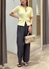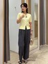 ケーブルカーディガンが綺麗見えするお仕事スタイルです。 カーディガンのコンパクトなサイズ感と、広がりすぎないワイドパンツで低身長もスタイルアップ◎ カーディガンは前を開けてTシャツとレイヤードしてもカジュアルで◎ パンツも1枚で綺麗見えするスラックスデザインなので、トップスはTシャツなどカジュアルなものでもバランスがとりやすいです☺︎ 着回しコーディネートを載せてますので、ぜひご覧ください!