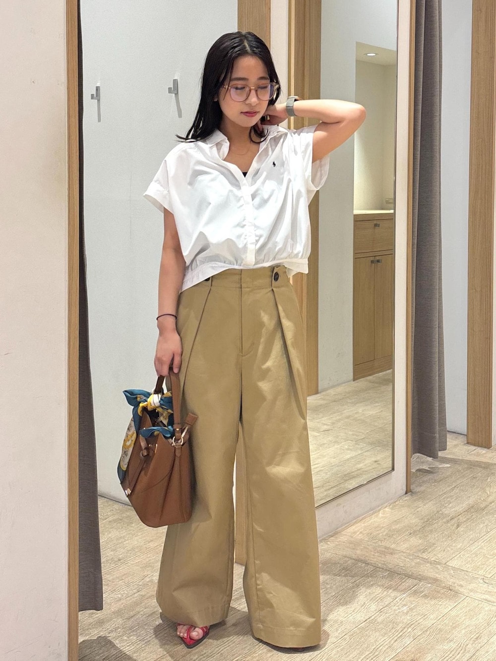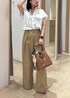 シンプルな白ブラウスを普段使いでおしゃれに着るコーデです。 ブラウスのボタンを開けて、低身長も襟付きブラウスをスッキリ見えるように工夫しました☺︎ ブラウスは前を開けてインナーと合わせ、羽織として着ても涼しくておすすめ! パンツは裾にボリュームがあるので、トップスはコンパクトなものと合わせると低身長もバランスがとりやすいです☺︎ 着回しコーディネートを載せてますので、ぜひご覧ください!