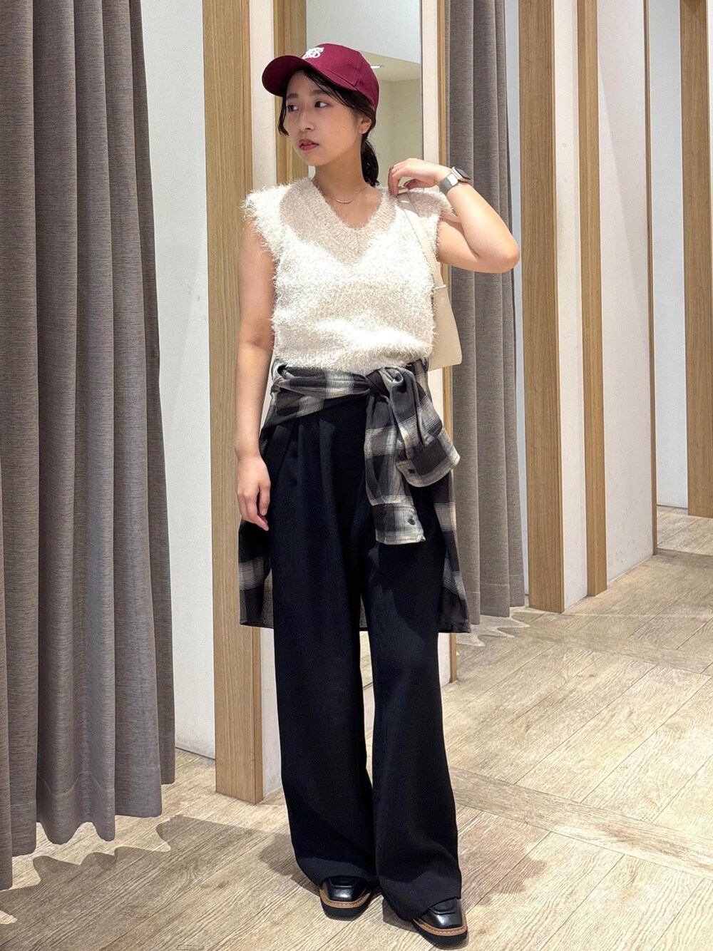 骨格ウェーブのカジュアルなゆるっとパンツコーデです。 女性らしいキラフワのトップスとチェックシャツでウエストマークすることで、ゆるっとパンツも部屋着にならずおしゃれ見え! トップスはスカートと合わせるとよりフェミニンな雰囲気に◎ スウェットはサスペンダーがついているので、Tシャツと合わせてカジュアルにも着映えしておすすめです☺︎ 着回しコーディネートを載せてますので、ぜひご覧ください!