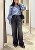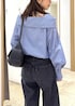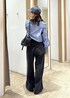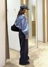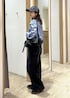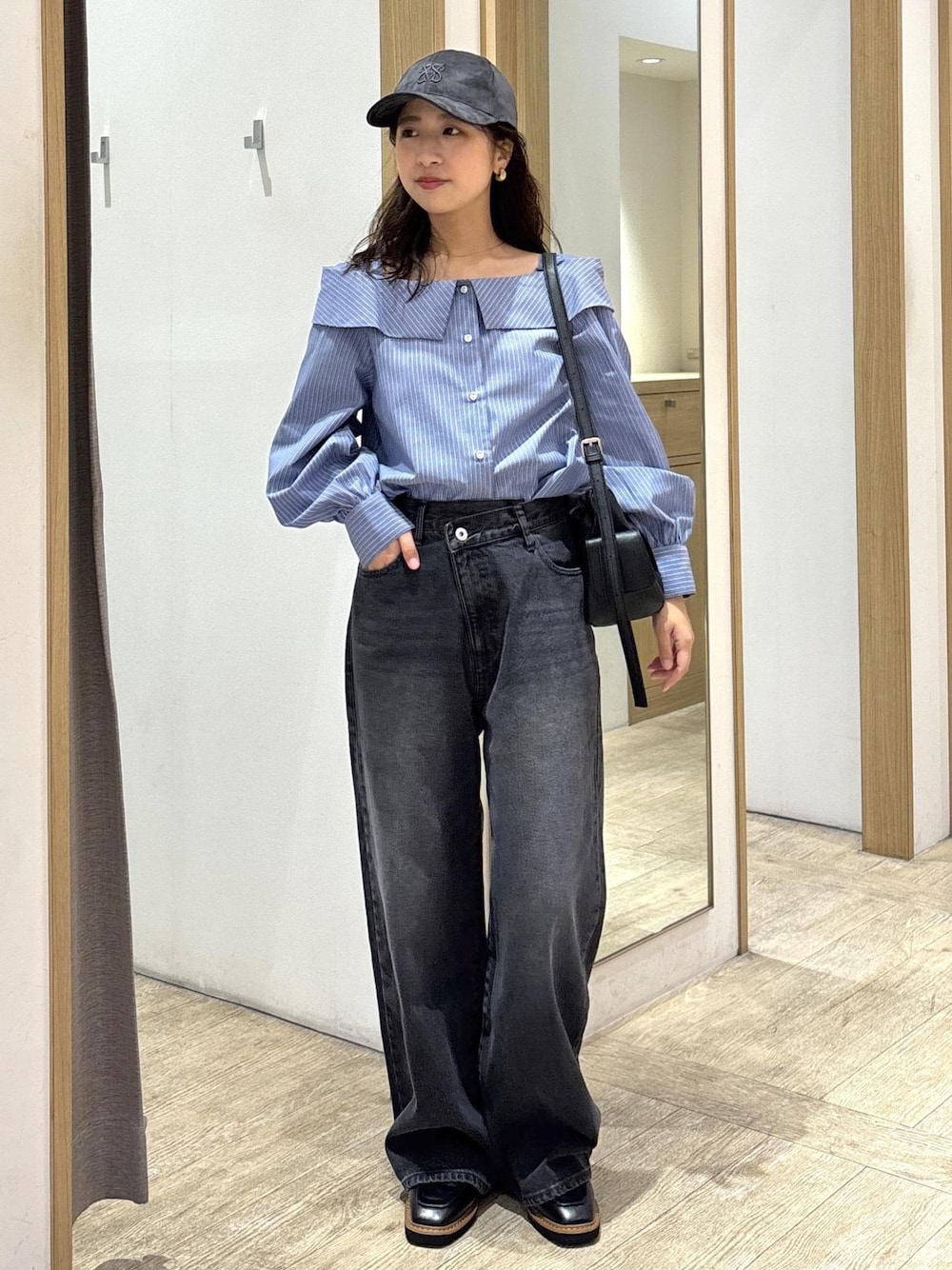 お仕事に使えるブラウスをデニムでカジュアルに着こなすコーデです。 ブラウスは長袖ですがオフショルでデコルテが綺麗に見え、低身長ウェーブに必須の抜け感がバッチリ出る優秀アイテム☺︎ スラックス素材のパンツやスカートと合わせればお仕事にもぴったりな知的に見えるブルーのストライプ柄です! お仕事バージョンも載せてますので是非ご覧ください!