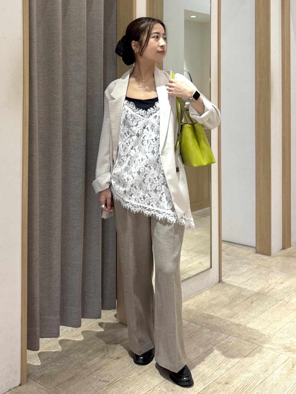 トレンドのレースキャミをジャケットでハンサムに着こなすコーデです。 ジャケットはセットアップのパンツ(BVS36100)とトップス(BVH36100,BVM36100)、スカート(BVC36100)がございます。セットで着てお仕事着にも◎ パンツはハイウエストデザインで脚長効果抜群!骨格ウェーブのスタイルアップにもおすすめです☺︎ 着回しコーディネートを載せてますので、ぜひご覧ください!