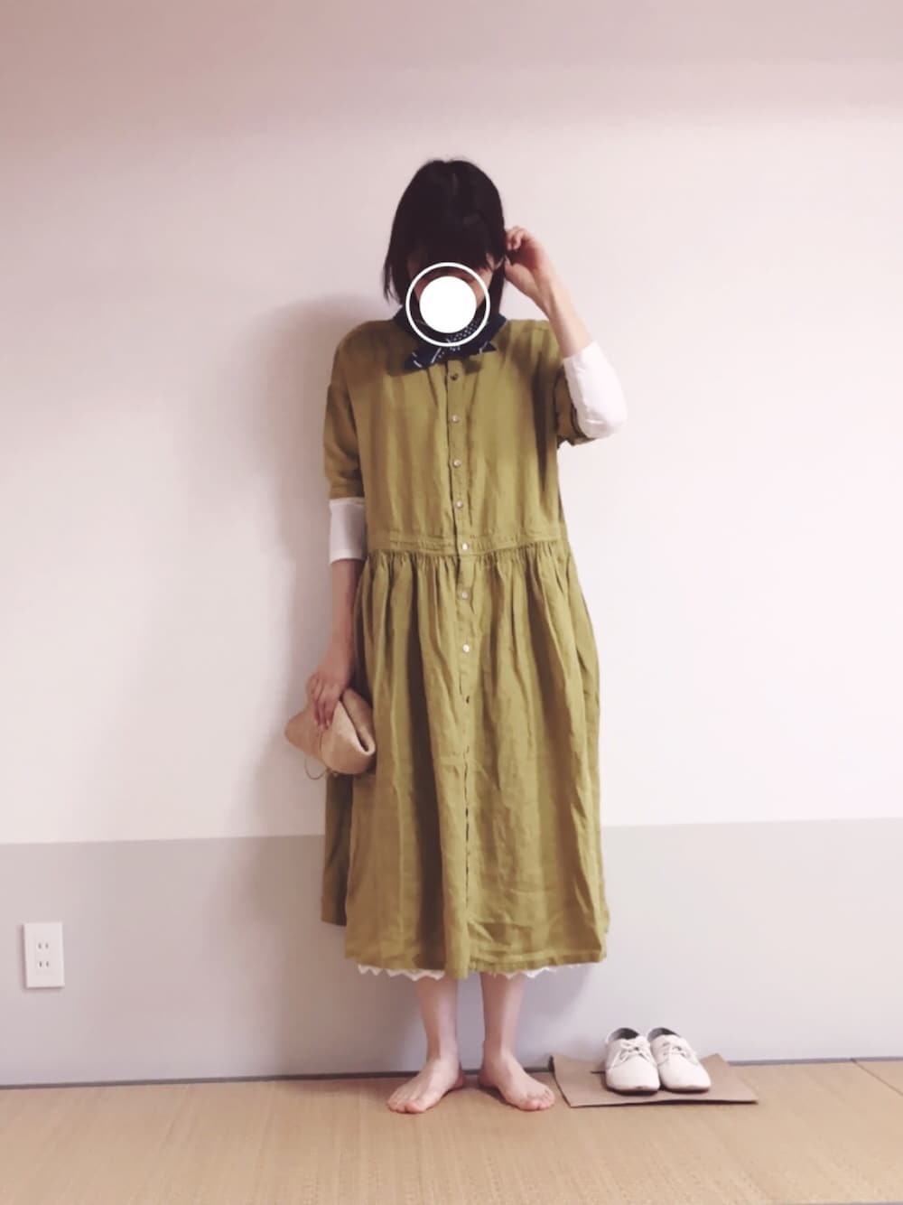 レースチラ見せ☺︎ 若葉と同じ色のワンピース🌱