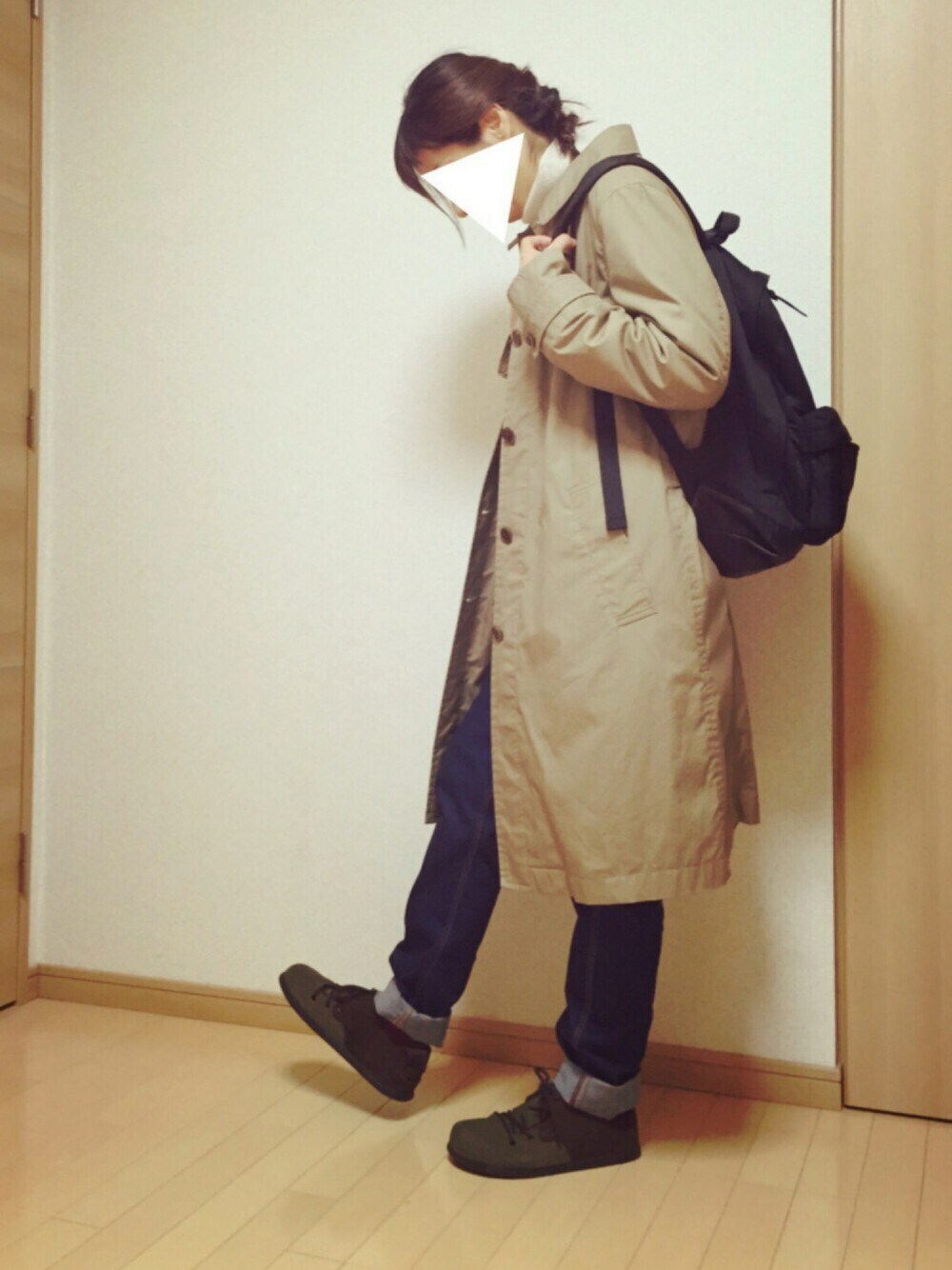 su-su-のステンカラーコート「・FINE TOUGH POPLIN」を使ったコーディネート
