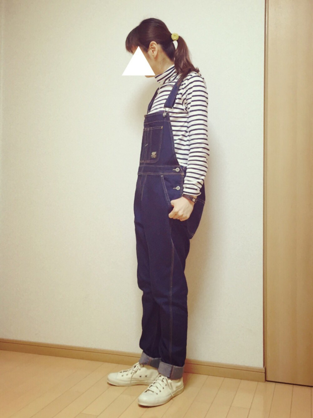 しましまと オーバーオール 間違いないやつ😊 白のハイカット登場です🙌 ハイカット具合が見えなーい💦 ベランダの手すり拭いたら 緑色の粉… やつらのせいで、目が開かなかった😲